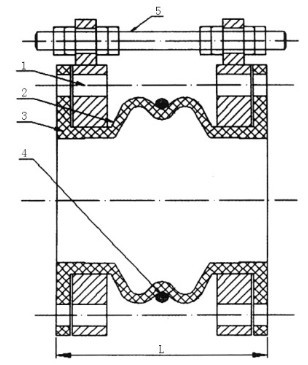 5、 當(dāng)橡膠接頭在水(油)泵出口近距離或開停頻繁條件下使用時(shí),為減少橡膠接頭長(zhǎng)度的拉伸和壓縮過大而給泵和管道帶來的影響,應(yīng)在法蘭兩端增加限位裝置。