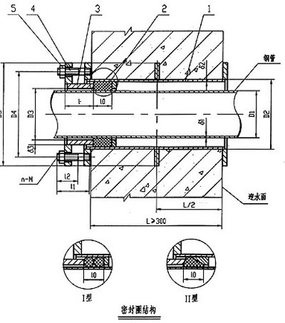 02S404柔性防水套管一般適用于管道穿過墻壁之處受有振動(dòng)或有嚴(yán)密防水要求的構(gòu)筑物;剛性防水套管一般適用于管道穿過墻壁之處要求一般防水的構(gòu)筑物;柔性及剛性防水套管穿墻處之墻壁,如遇非混凝土?xí)r應(yīng)改用混凝土墻壁,而且必須將套管一次凝固于墻內(nèi);防水套管施用于建筑、化工、鋼鐵、自來水、污水處理等單位。